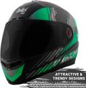 Steelbird SBA-1 Thalaiva Full Face ISI Certified Helmet Fitted Clear Visor and Extra Visor Motorbike Helmet (Matt Black Green with Smoke Visor)