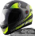 Steelbird SBA-1 Thalaiva Full Face ISI Certified Helmet Fitted Clear Visor Motorbike Helmet (Matt Black Neon with Clear Visor)