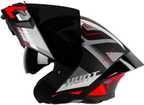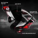 Steelbird SBA-20 Hunt ISI Certified Flip-Up Graphic Helmet for Men with Inner Sun Shield Motorbike Helmet (Matt Black Red with Black Spoiler and Smoke Visor)