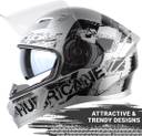 Steelbird SBA-21 Hurricane ISI Certified Full Face Graphic Helmet with Inner Sun Shield Motorbike Helmet (Glossy Silver Black)
