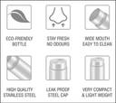 Steelo classic stainless steel fridge water bottle 800ml (pack of 6) 800 ml Steel Bottle (Pack of 6, Steel/Chrome)