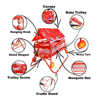 STEELOART -Baby Cradle Cot Cum Stroller Red Bassinet For Baby Boys & Baby Girls (Red)