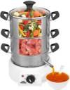 The S.S. Steemo Multi Steam Cooker is heavily praised among current owners and although It might be a bit pricey for some, You have to take Into the consideration what you get for your money and in this case, you will get a top-rated quality of food contact, food safe, non-absorbing unusual odours - stainless steel jars preserving the natural flavour, taste and nutritional values. Additionally the idly attachments & rice bowl attachment are also produced out of High-Quality Stainless Steel. And once again main point to be emphasized is that you won’t get residue flavours or colours from your food contaminating the next meal, you cook. This multifunctional top-rated, “Steemo Brand” Steam Cooker Is an extremely durable and efficient product for your kitchen. Moreover, you can cook variety of food at the same time by using both the S.S. steaming jars together and there is no plastic in contact with the food either. Your rice and vegetables only come in contact with S.S. cooking surface So that you can get assured it won’t affect the natural flavour or taste in any way. Also, the jars are having two short handles with balanced weight on eitherside thus providing ease & convenience to carry around. Even 4x3 Idly attachment is also made of S.S. With Steemo Stainless Steel Steam Cooker you can have 4 (Four) cooking in One Go all together. It cooks, steams, reheats and can make all sorts of dumplings, from dimsum to tibetan momos, fresh cut vegetables, uniformly cooked Non-Veg. It can even draw extra fat from the Non-Veg. simultaneously. It can sterilize milk without getting boiled or spilled out of the vessel, and since medium of heat is moisture, the water vapours, the taste of the milk remains original. It can make soup (extract) with the soup attachment and also can cook several items like idly, soft dhokla, khichdi, pulao, kheer, noodles, cake, pudding, sprouts, sweet corn , potatoes, sweet potatoes, sea food, boiled eggs, omelette without oil.