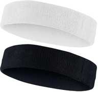 STEFFER Moisture Wicking and Non-Slip Exercise Workout Cotton Headband Pack of 2 Head Band (Black, White)