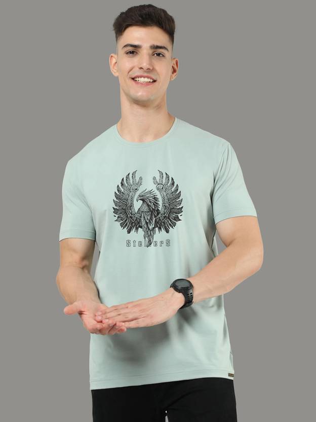Stellers Printed Men Round Neck Light Green T-Shirt