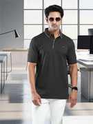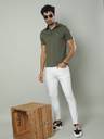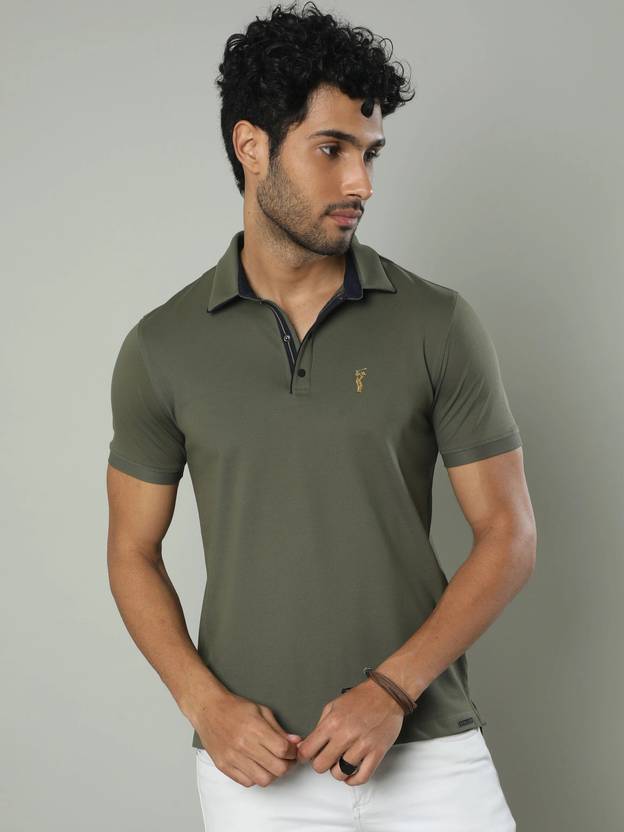 Stellers Solid Men Polo Neck Dark Green T-Shirt