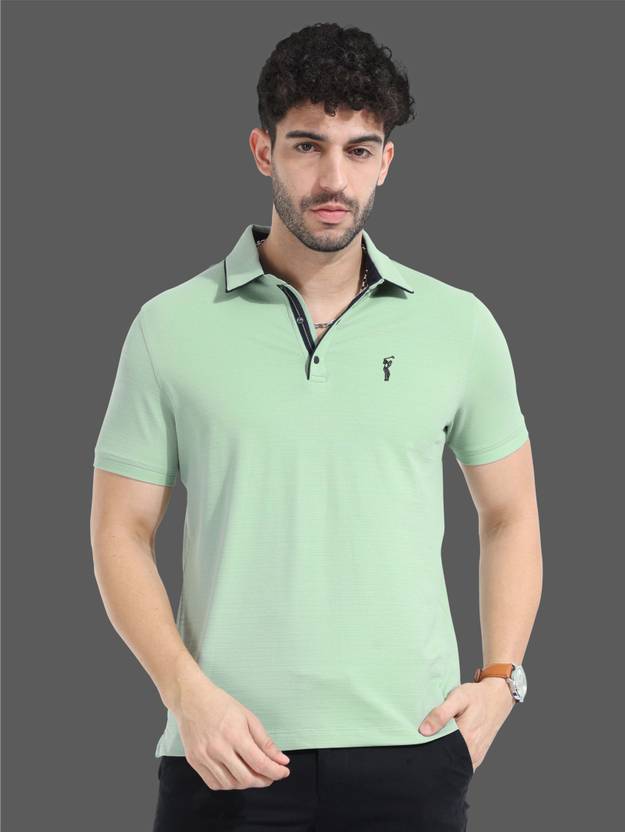 Stellers Solid Men Polo Neck Light Green T-Shirt