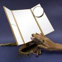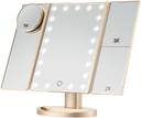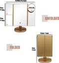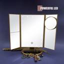 Introducing the 10X Trifold Makeup Mirror with Adjustable LED Lights and Magnified Mirrors, the perfect accessory for any beauty enthusiast. This versatile makeup mirror features three panels that can be adjusted to provide a panoramic view of your face, ensuring that you never miss a spot. Equipped with adjustable LED lights, you can customize the lighting to your desired level of brightness, creating the perfect ambiance for your makeup application. Additionally, the mirror includes 1x, 2x, 3x, and 10x magnified mirrors, allowing you to achieve precise makeup application, eyebrow grooming, and other grooming needs. Powered by 4 AA batteries, this mirror is also equipped with a USB MICRO-B type connector, allowing you to easily power up the mirror on the go. Its compact and lightweight design make it easy to carry while traveling, ensuring that you always have a reliable mirror on hand. Constructed with high-quality materials, the Trifold Makeup Mirror with Adjustable LED Lights and Magnified Mirrors is built to last. With its sleek and modern design, it is an excellent addition to any vanity, making it the perfect gift for yourself or a loved one. Experience the convenience and versatility of the Trifold Makeup Mirror with Adjustable LED Lights and Magnified Mirrors today and take your beauty routine to the next level