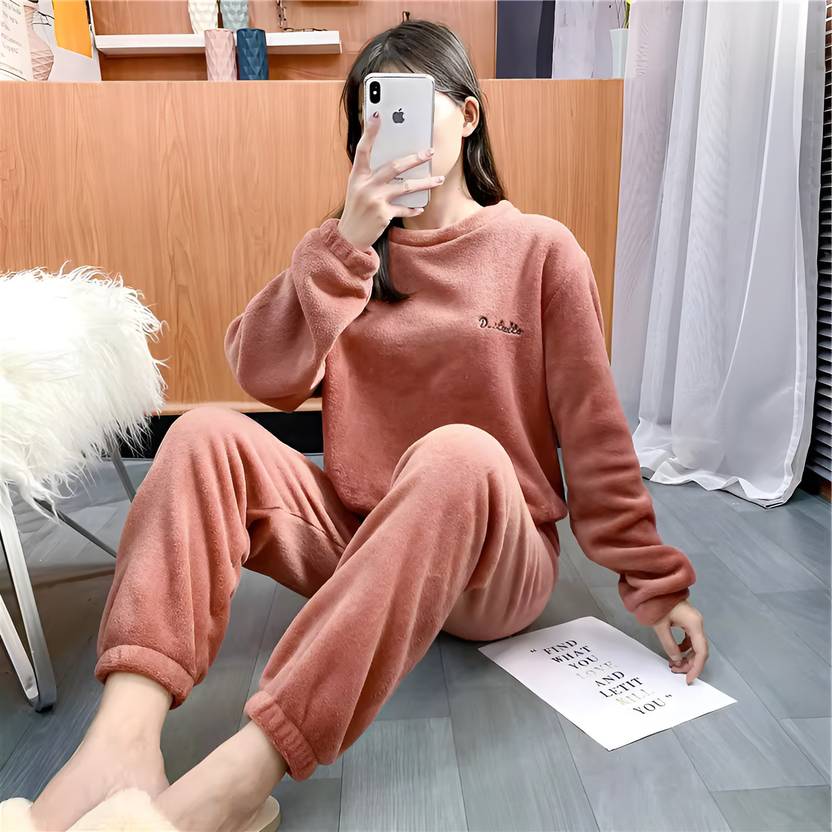 Stem Rope Women Solid Red Night Suit Set