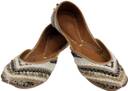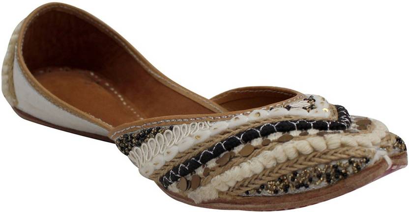 Step N Style Ladies White Multi Woolen Thread Punjabi Jutti Ethnic Mojari Handmade Rajasthani Juti Jutis For Women (Black, Beige , 3.5)