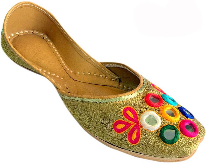 Women Flat Jaipuri Sandals Mirror Work Khussa Shoes Punjabi Jutti Ballerina