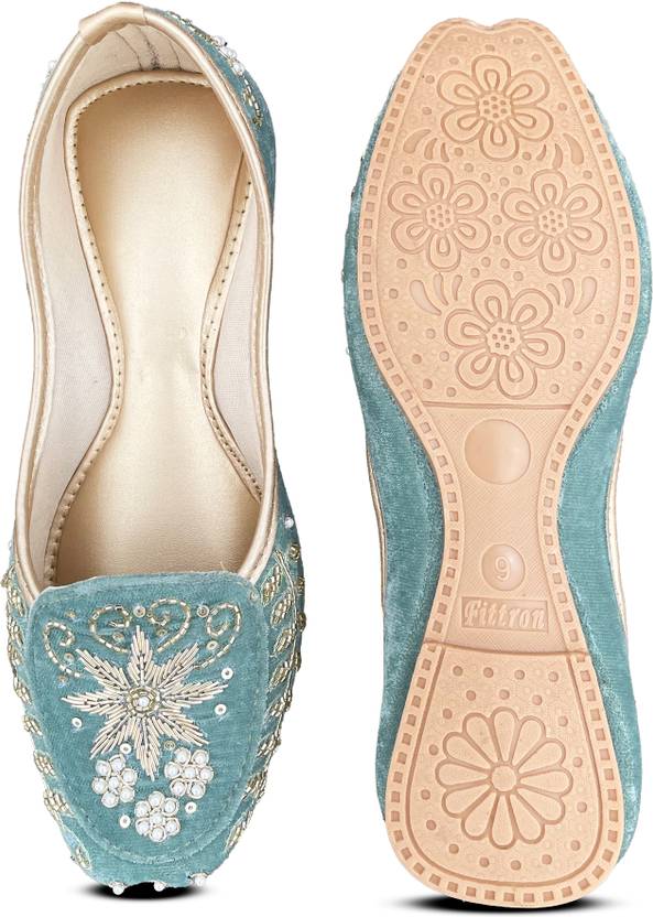 Steploom Women Velvet Embroidered Punjabi Jutti | Traditional Ethnic Jutis For Women (Green , 6)