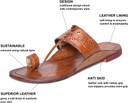 Elevate your style with this comfortable pair of Kolhapuri from the house of STEPFOX brand. Featuring a contemporary refined design with exceptional comfort, this pair is perfect to give your quintessential dressing an upgrade. Various twist in the design make it suitable for events such as weddings, office, parties, and all occasions. A pair of kolhapuri chappals can complement a Jeans and T-Shirt look as well as Ethnic Fashion wear like Kurata Pajama and Dhoti