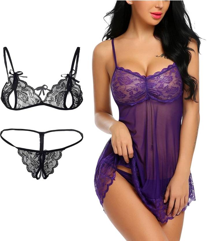 STEPHY Babydoll, Bathrobe, nightgown, nighty, nightwear, bedroom dress, honeymoon dress, first night dress, love making dress, honeymoon gift..The seductive outfit has perfect design to support the bust perfectly. If tempting transparent dresses lure you, this product is your ultimate pick. It comes with a complimenting thong.