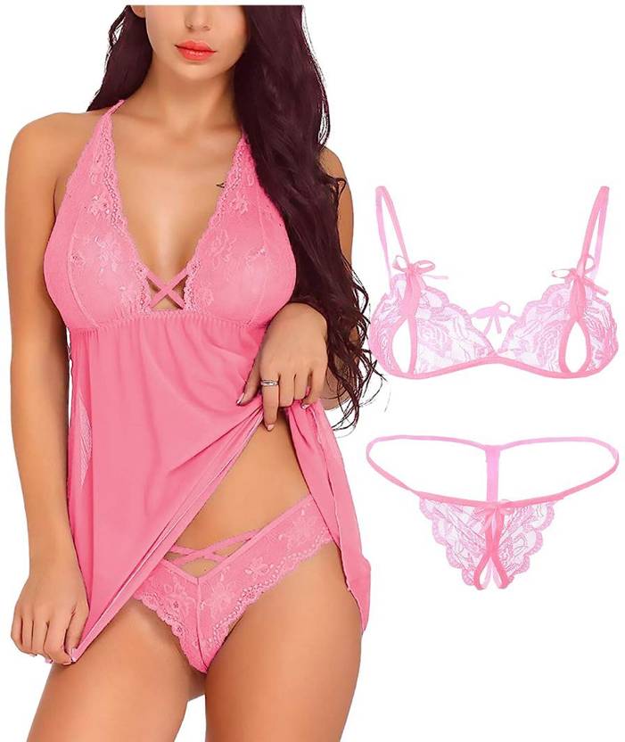 STEPHY Babydoll, Bathrobe, nightgown, nighty, nightwear, bedroom dress, honeymoon dress, first night dress, love making dress, honeymoon gift..The seductive outfit has perfect design to support the bust perfectly. If tempting transparent dresses lure you, this product is your ultimate pick. It comes with a complimenting thong.