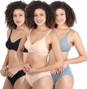 SGC Sweden Design Women's Stylish Non Padded Bra, T.shirt Bra,Push Up Bra Full Coverage Bra Lingerie Set is crafted using the finest soft Cotton Fabric, ensures all day freedom and comfort for females. This collection will be a trendy addition to your innerwear & swimwear wardrobe. Made from delicate and breathable fabric,These would go greatly with your every outfit and will make you feel. The smooth Lingerie Set finish sliding against your skin makes you very comfortable and the beautiful design which is unique in style makes you look more feminine and appealing. This lingerie set comes in beautiful colours, so pick your favourite colour. Package content :3 Lingerie Set (Non Padded Bra & Panty). Fresh vibrant lively colours and romantic design is meant for everyday wear.Non Padded Bra For Women: B-Cup|. This Non padded bra gives utmost support and comfort.