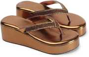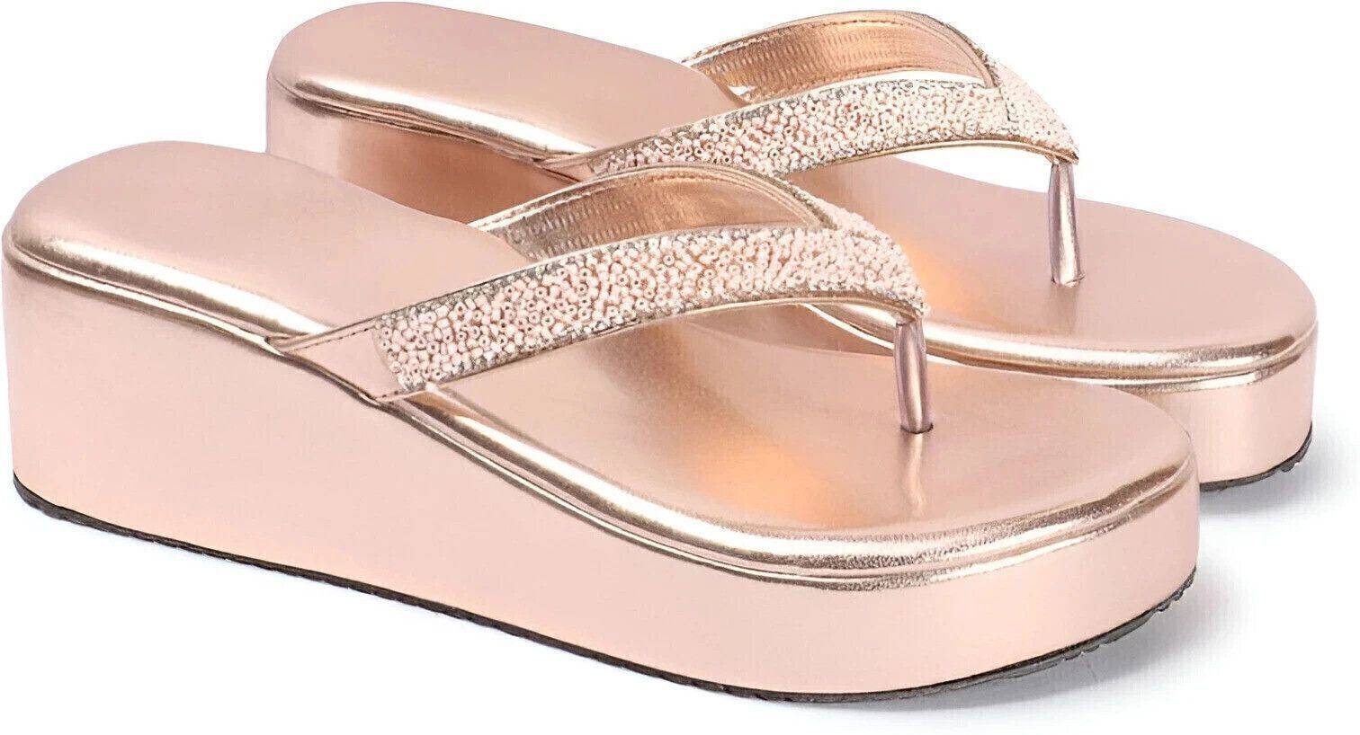 Stepza Women's Shimmer Wedge Flip-Flops – Add elegance to your look with these metallic wedges featuring shimmering embellished straps and a comfortable cushioned footbed. The lightweight wedge heel offers style and support, while the anti-slip sole ensures stability. Perfect for parties, festive wear, and everyday glamour!