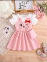 Design and Material: Crafted from high-quality, breathable fabric, this frock ensures your child stays comfortable all day long. The upper part of the frock features a pure white bodice with short, ruffled sleeves that add a touch of elegance. The bodice is adorned with an adorable cartoon animal face, complete with large, expressive eyes, whiskers, and a playful winking expression. The small red bow near one of the ears adds a cute and whimsical element to the overall design.