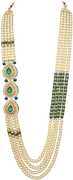 STIC 4 Layers 3 Sided Broach White - Maroon Dulha Mala for Engagement - Wedding Pearl Mother of Pearl Necklace