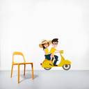 Sticker Hub 60 cm Couple On a Scooty Wall Sticker 60 cm x 56 cm Self Adhesive Sticker (Pack of 1)