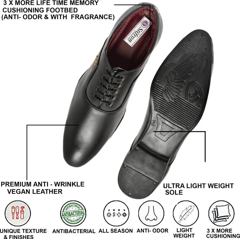Elevate your style with this classy pair of Formal Shoes from the house of STIFRON. Featuring a contemporary refined design with exceptional comfort, this pair is perfect to give your quintessential dressing an upgrade. STIFRON is the go-to footwear, accessory and apparel brand that delivers the right mix of timeless style, dependable comfort and quality. We provide the worlds most comfortable and stylish shoes, accessories and apparel to help consumers look and feel their best. We know we've done our job when we see people smile the purest expression of comfort and style