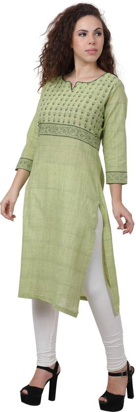 Women Printed Cotton Blend Straight Kurta (Green)