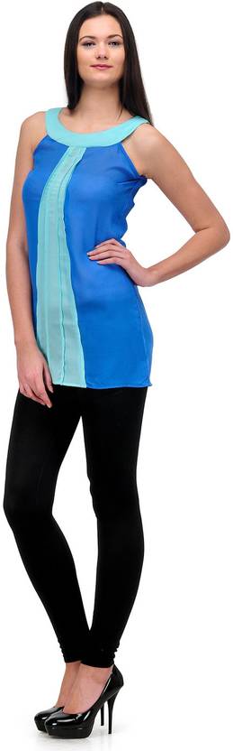 Casual Sleeveless Solid Women Blue Top