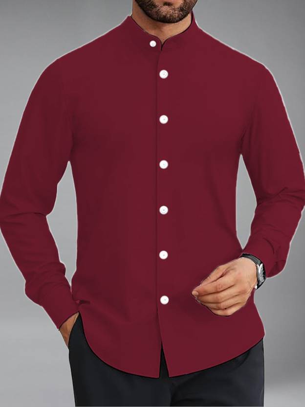 Yugnik Men Slim Fit Solid Mandarin Collar Casual Shirt