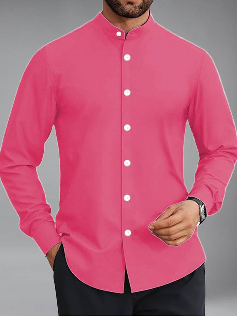 Yugnik Men Slim Fit Solid Mandarin Collar Casual Shirt