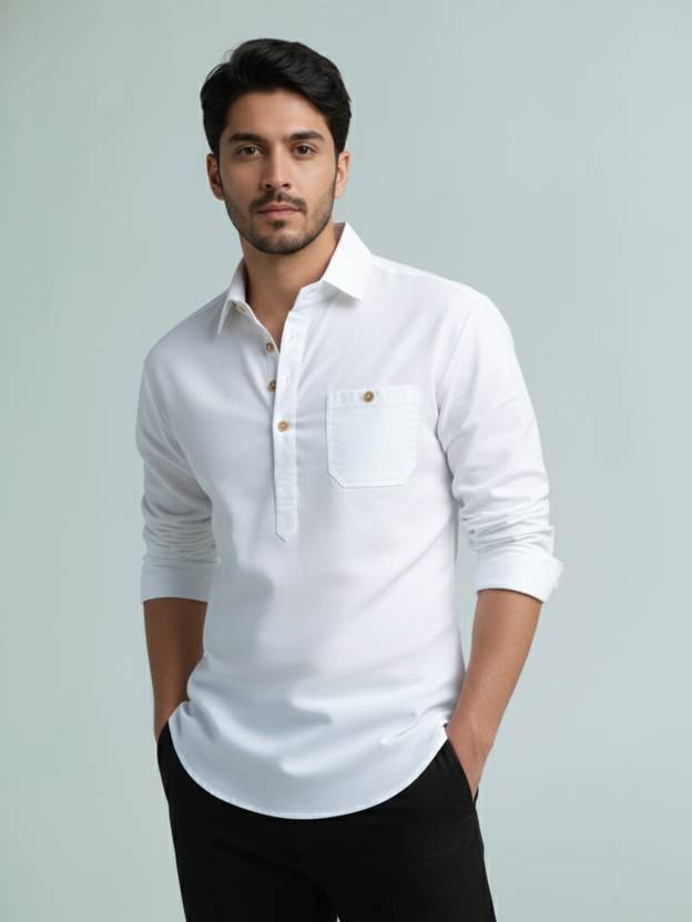 This Cotton Blend Short Kurta is perfect for men who value style and comfort. Its versatile design makes it ideal for any occasion—festivals, parties, or casual outings. Product Details 📋 👨‍🦰 Gender: Men 🎨 Pattern: Solid 🧵 Design Type: Plain 🔘 Closure: Button 👕 Sleeve: Full Sleeve ⬆️ Waist Rise: Mid-Rise 🪡 Hemline: Curved 🌿 Fabric: Cotton Blend 📏 Product Length: Short 📦 Material & Care 🧺 Fabric: Cotton Blend Wash: Suitable for hand wash and machine wash. How to Style 🎯 Pair it with dark-wash denim or linen trousers for a casual look. Dress it up with a pair of churidar or slim-fit pants for festive occasions. Add leather sandals or loafers and a wristwatch for a classy finish. Regular the sleeves for a relaxed vibe during daytime events. This shirt kurta seamlessly blends traditional elegance with modern styling, making it a wardrobe essential for every man! 👌