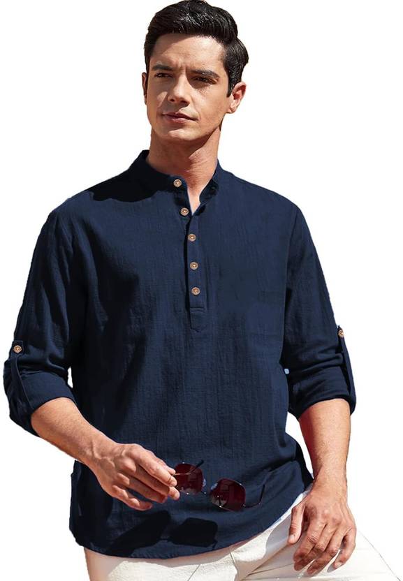 This Cotton Blend short kurta is perfect for men who value style and comfort. Its versatile design makes it ideal for any occasion—festivals, parties, or casual outings. Product Details 📋 👨🦰 Gender: Men 🎨 Pattern: Solid 🧵 Design Type: Plain 🔘 Closure: Button 👕 Sleeve: Full Sleeve (Roll-Up Option) ⬆️ Waist Rise: Mid-Rise 🪡 Collar: Mandarin/Chinese ✂️ Hemline: Curved 🌿 Fabric: Cotton Blend 📏 Product Length: Short 📦 Pack of: 1 Material & Care 🧺 Fabric: Cotton Blend Wash: Suitable for hand wash and machine wash. How to Style 🎯 Pair it with dark-wash denim or linen trousers for a casual look. Dress it up with a pair of churidar or slim-fit pants for festive occasions. Add leather sandals or loafers and a wristwatch for a classy finish. Roll up the sleeves for a relaxed vibe during daytime events. This short kurta seamlessly blends traditional elegance with modern styling, making it a wardrobe essential for every man! 👌"