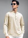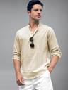 Univibe Men Solid Cotton Blend Straight Kurta (Beige)