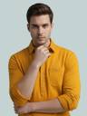 FireFish Men Solid Cotton Blend A-line Kurta (Yellow)