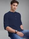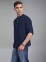 Univibe Men Solid Cotton Blend Straight Kurta (Dark Blue)