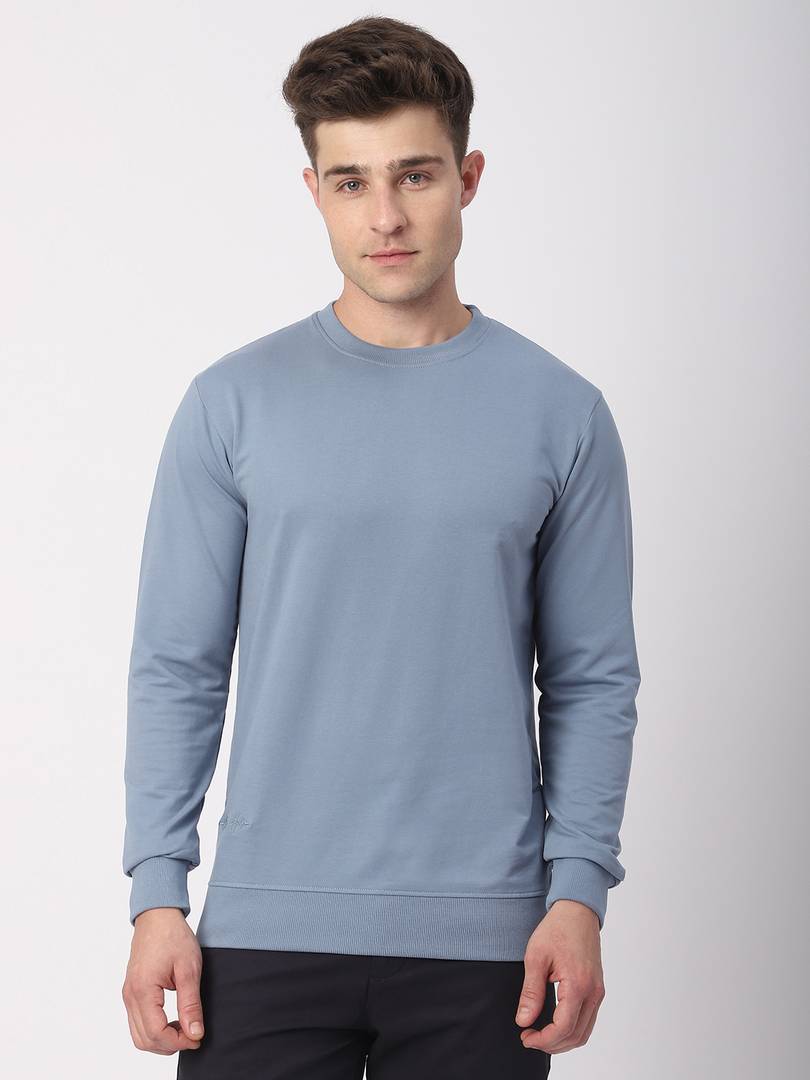 Stitch Hub Blue Ultra Soft Sweatshirt For Men Regular Fit With Solid Pattern