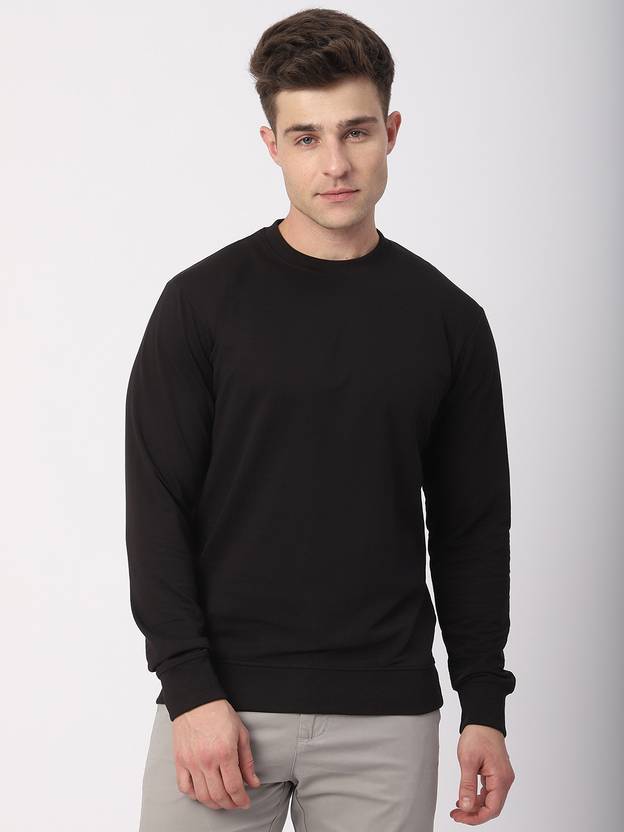 Stitch Hub Black Ultra Soft Sweatshirt For Men Regular Fit With Solid Pattern