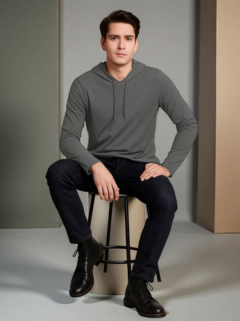Men Full Sleeve Solid Hooded Sweatshirt