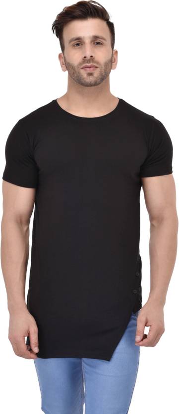 STITCH STUDIOS Men Solid Round Neck Cotton Blend Black T-Shirt