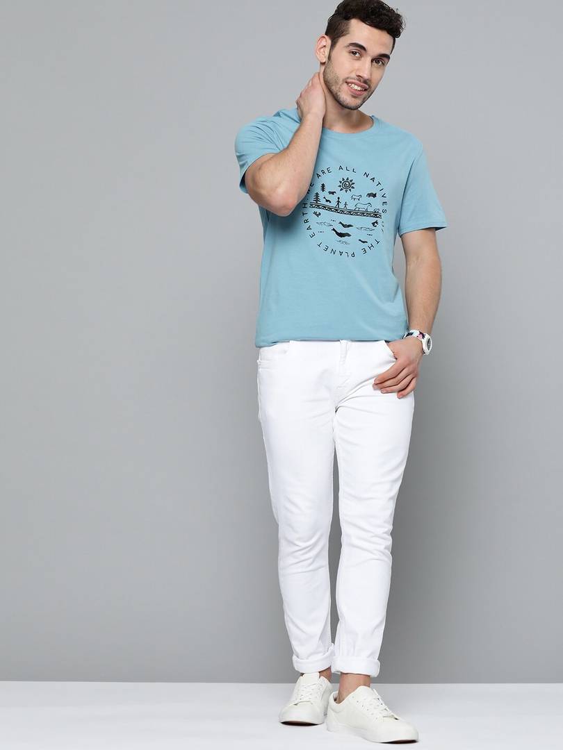 Men Printed Roun...