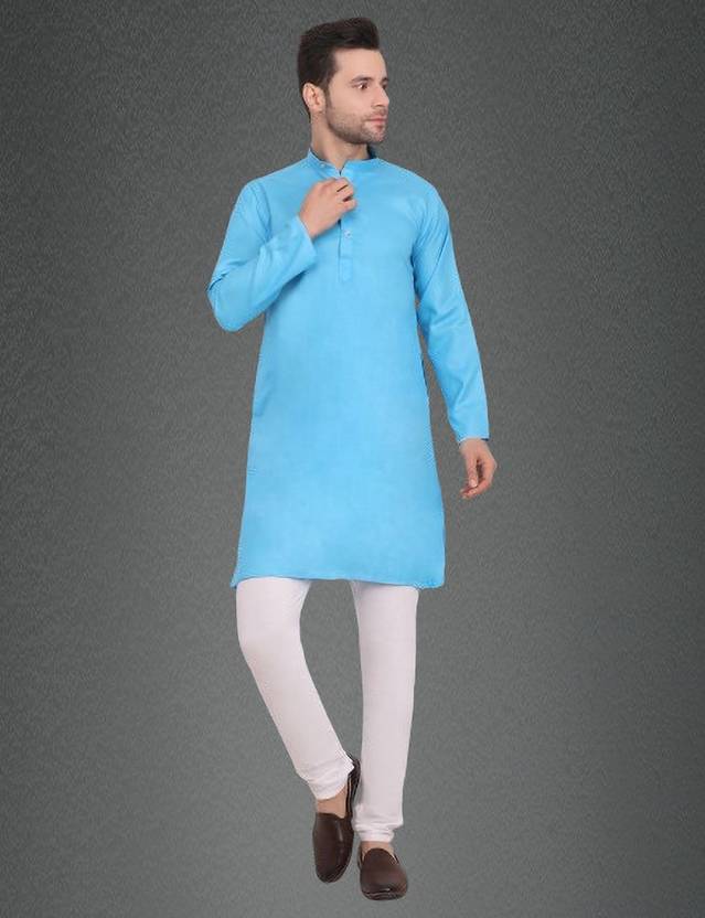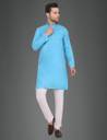 Stitchy Head Men Solid Cotton Blend Straight Kurta (Light Blue)