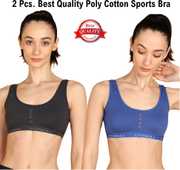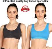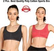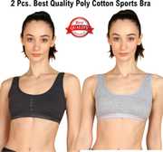 STOGBULL Sports Bra made from superior quality branded Poly Cotton fabric and also used Ultra Soft Lycra elastic. This bra provide proper support and will feel soft against your skin. This bra will comfortable to wear all day long. STOGBULL Sports Bra is guaranteed comfortable and soft to wear. STOGBULL Womens & Girls Premium Quality Full Coverage Sports Bra, Women's Non Padded Bra, Inner Bra, Sleep Bra, Night Bra, Sport Bra & Gym wear Bra , Gym Bra, Lingerie, Lingerie Bra, For New Generation , New Style Girl Bra, Photoshoot Bra, Bollywood Actors Favorite Bra. This bra is for womens girls ladies teenegers. Sports Bra combo pack of 2. Size30 32 34 36 38 40. Sports bra are available in different color Grey Black Red Blue Pink Purple Skyblue White.