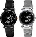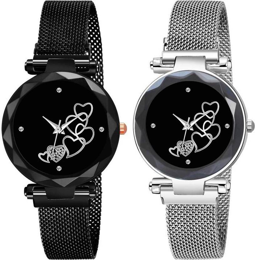 Latest Black &Silver New Designer combo Luxury Magnet Buckle Watches For girls