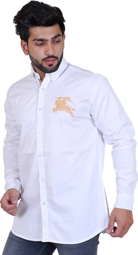 Men Regular Fit Solid Button Down Collar Party Shirt