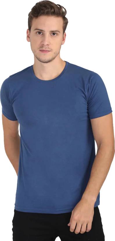 STONE ICELAND Men Solid Round Neck Reversible Cotton Blend Blue T-Shirt