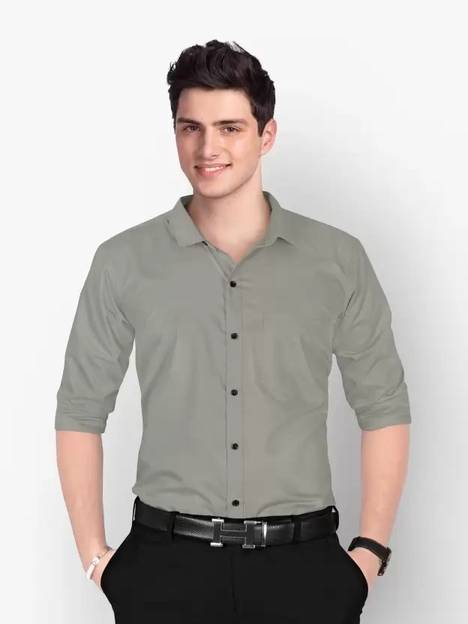 Jumii Enterprise Men Solid Casual Grey Shirt