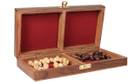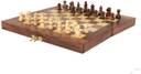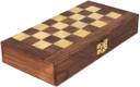 This easy to carry elegant chess set is handcrafted from durable Indian rosewood and white wood with a storage compartment for keeping the chess pieces in place.The interior of the storage compartment is lined with blue velvet which cushions the chess pieces for easy and safe transport while a metal latch on this chess board allows to keep the chess pieces safe and intact.Smooth surface finish allows for an exceptional gaming experience while the compact structure which makes it perfect travel chess set.The exquisite workmanship of the artisans in Saharanpur, India completely transforms wood into products of high aesthetic and functional values