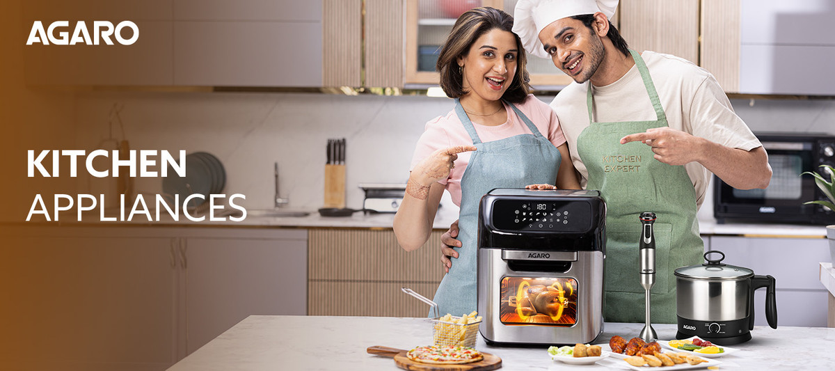 - Kitchen Appliances: Have a look at some of the best-selling AGARO kitchen appliances like mixer grinders, air fryers, OTG ovens, choppers, blenders, and pressure cookers. These appliances can get the job done swiftly, saving you time and effort during meal preparation.