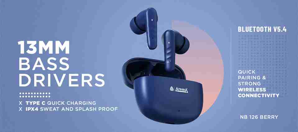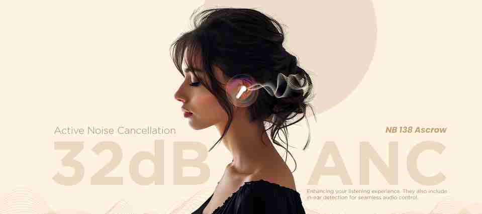 Aroma NB138 Ascrow 32dB Active Noice Cancellation 70H* Fast Charging Earbuds Bluetooth