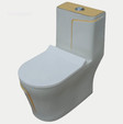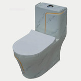 clayplus Shining white Marble commode with Yellow Finishing Line and Round Flush Button Western Commode