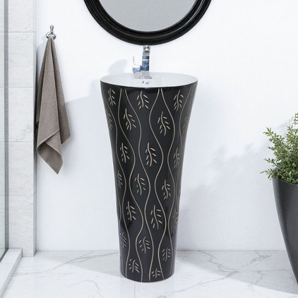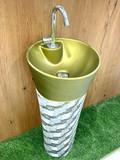 clayplus PREMIUM GRADE CERAMIC DESIGNER PEDESTAL WASH BASIN ( GOLDEN AND BLACK) Pedestal Basin